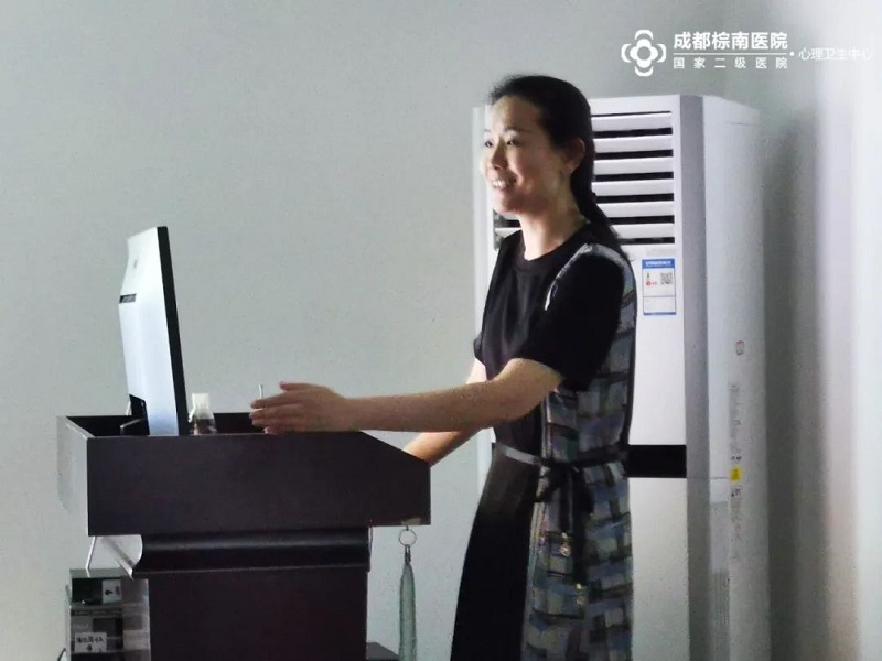 为了更好的保证重度抑郁患者的治疗效果 ,2021年7月27日下午,四川省人民医院心身医学中心教授黄雨兰受成都棕南精神卫生中心邀请,在棕南医院开展了主题为“全面改善情感、躯体、认知三大症状群”的知识讲座。全面清晰地为我院医务人员讲解抑郁药物的对比效果及使用方法。